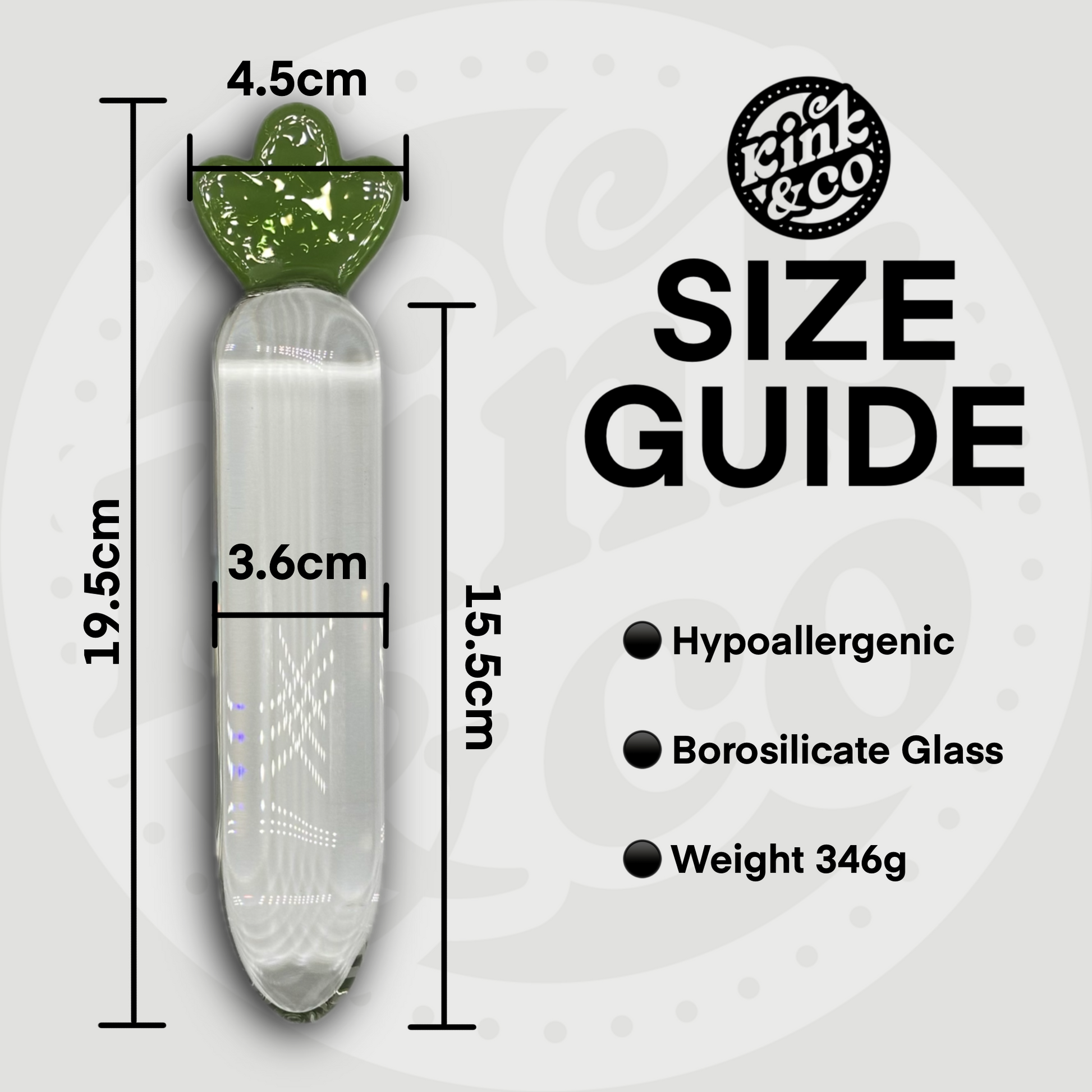 Delight your senses with this carrot dildo, which is suitable for anal and vaginal stimulation. The shallow tip tapers into a tantalising 1.4-inch shaft, leading to an ergonomic handle. Grip the green leaves and explore new sensations with each thrust.