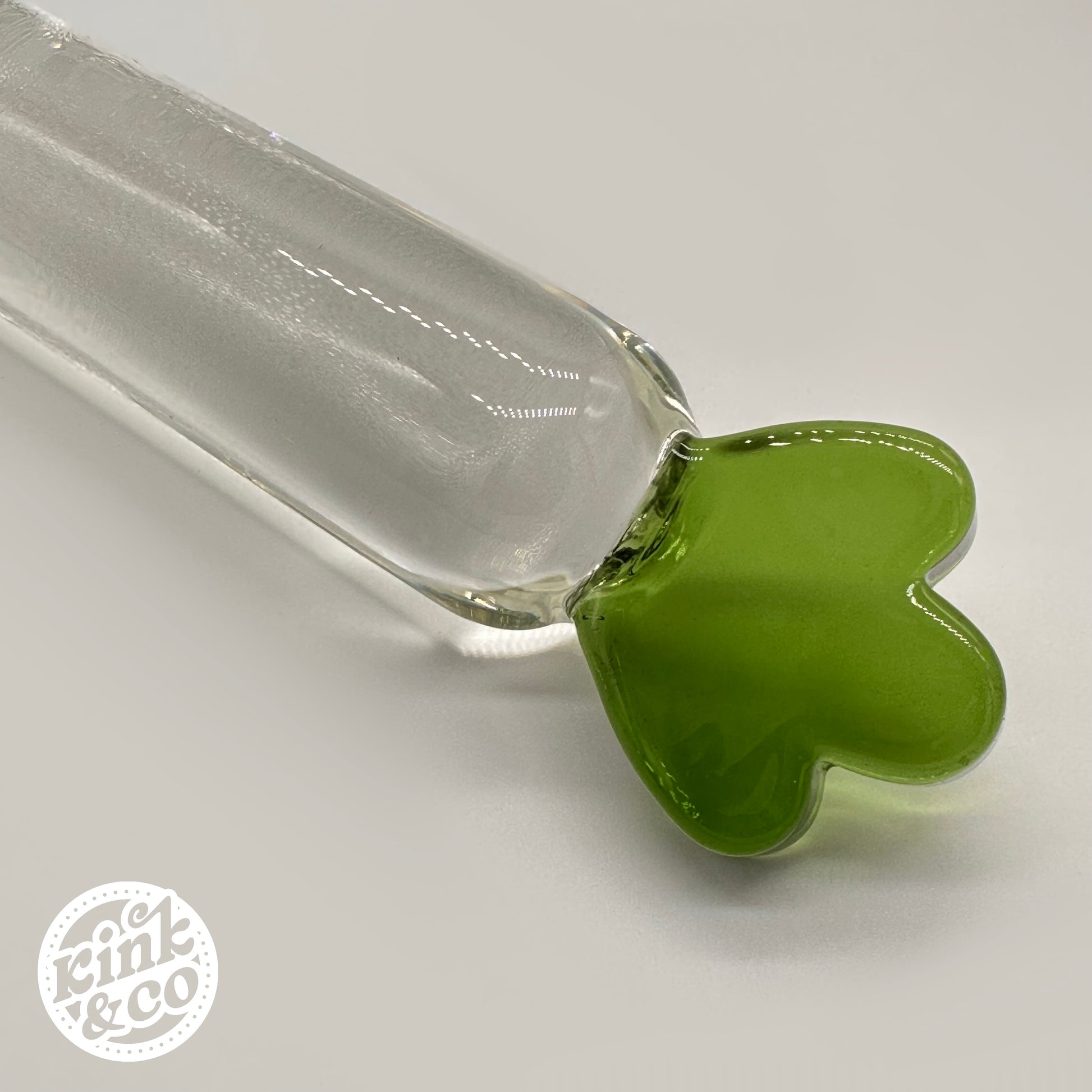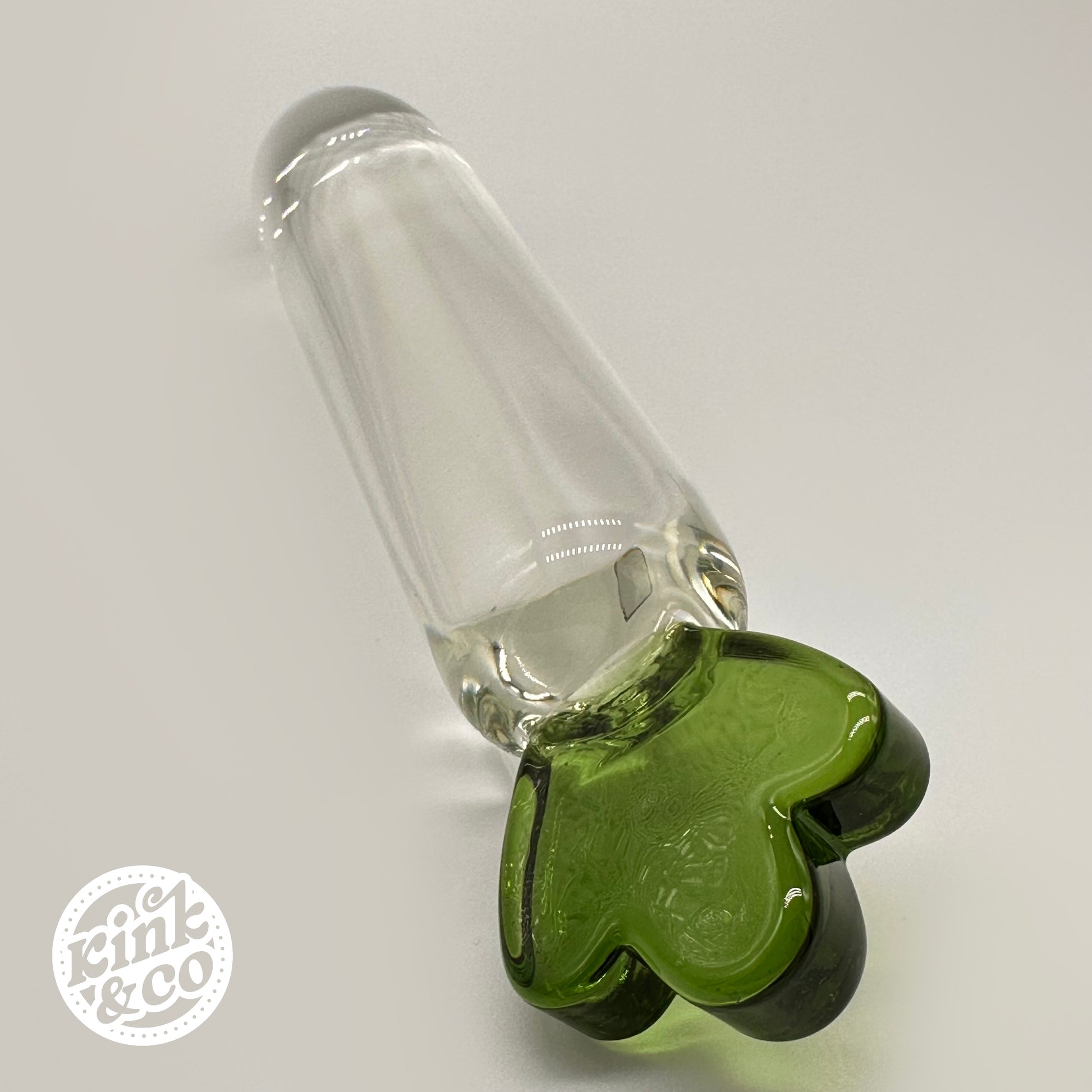 This hand-blown glass dildo comes with 6.1 blissful inches and a leaf-shaped handle.